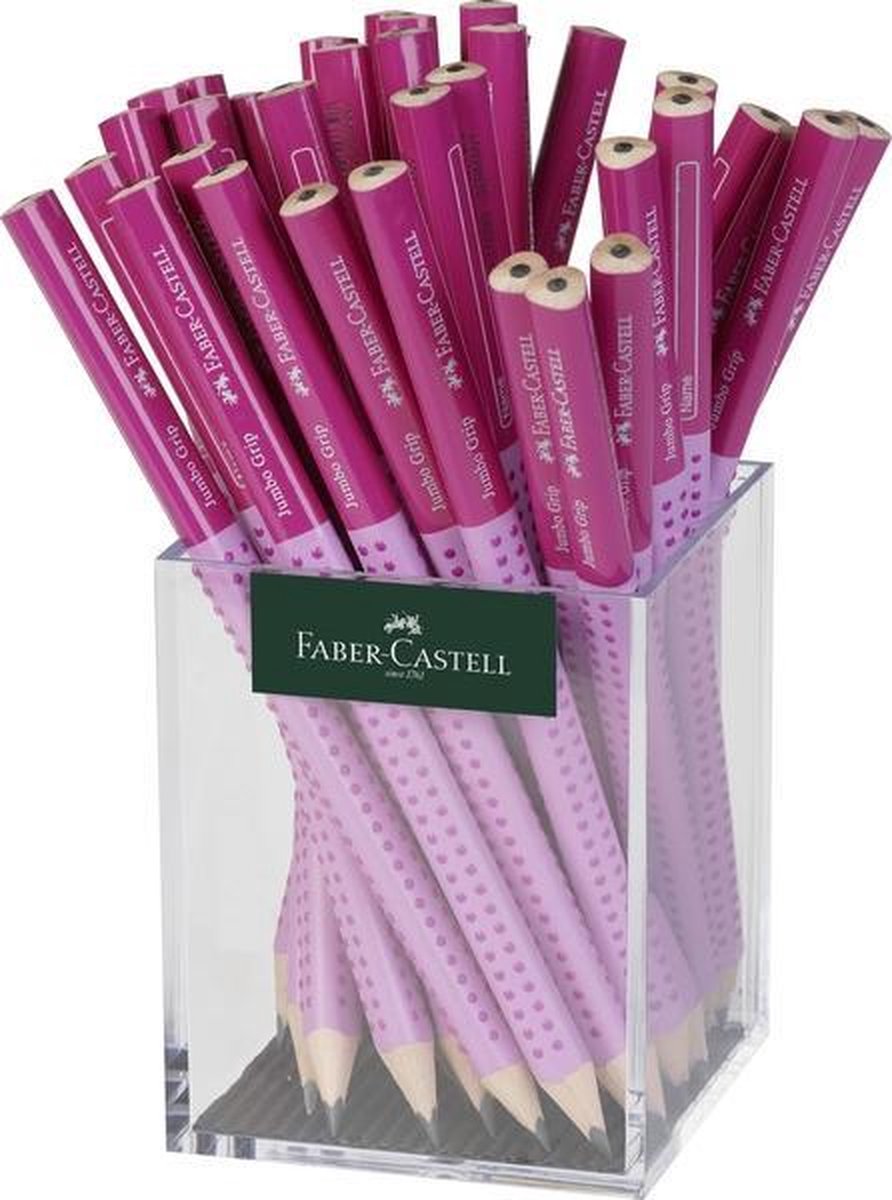 Jumbo Grip potloden in een koker met 36 stuks in de kleur roze/lichtroze. Onbreekbaar door een speciale verlijming.
