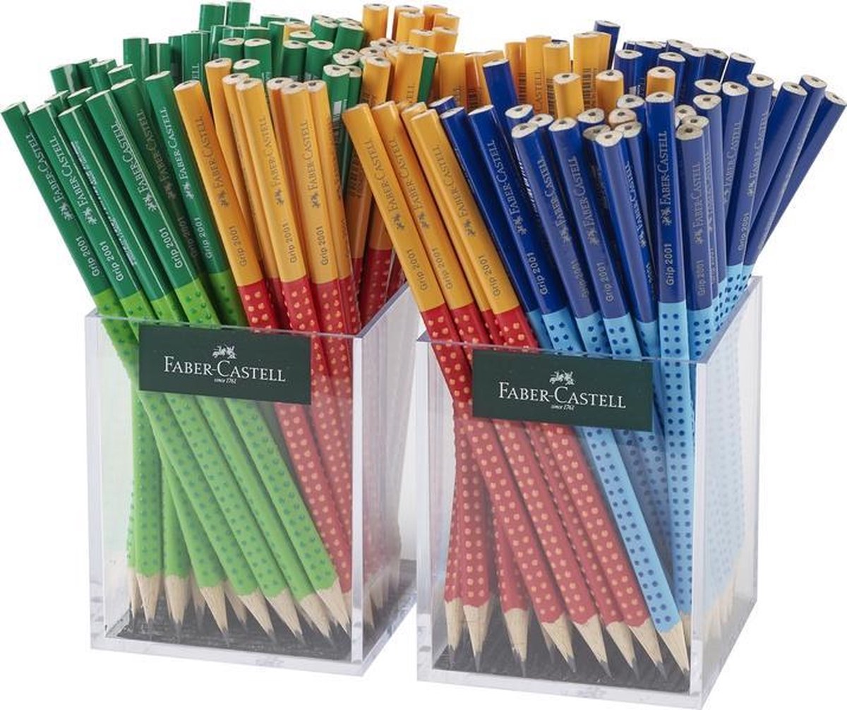 144 Grip 2001 potloden in twee kokers. In de kleuren: 48x groen/lichtgroen, 48x rood/oranje en 48x blauw/lichtblauw.
