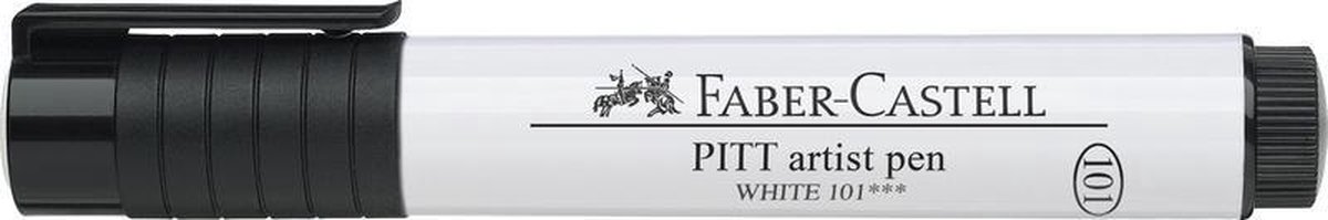 De stift is uitermate geschikt voor het werken op grote oppervlakken, maar voldoet ook voor fijner werk. Ook bij veelvuldig gebruik blijft de punt vormvast. Met flexibele 'penseel'-punt. Kleur 101 wit.
