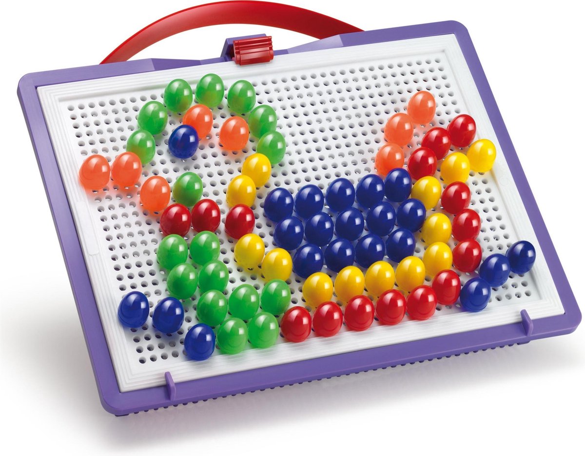 Ontwerp de mooiste figuren door de kleurrijke pinnen op de juiste plek in het bord te drukken. Kinderen ontwikkelen hiermee hun oog-handcoördinatie en het herkennen van kleuren. Volg de ontwerpen uit het voorbeeldboek of laat jouw fantasie het werk doen. Het insteekbord is gemakkelijk overal mee naartoe te nemen, hierdoor werk je overal zonder problemen verder aan jouw creatie.