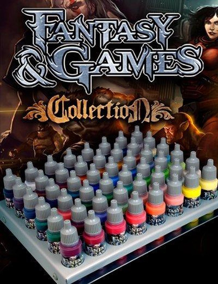 Scale 75 Fantasy & Games Collection (SSE-020) bevat 48 potjes Scalecolor Fantasy & Games acrylverf van 17ml. Deze verf kan zowel met het penseel als met de airbrush verwerkt worden en heeft een goede dekkracht en vloeit prettig. Deze set combineert de 6 losse Fantasy & Games sets. Scale75 Fantasy & Games paint, De formule van de Fantasy & Games verven is anders dan de originele Scalecolor. De kleuren zijn helderder en de consistentie steviger voor gaming gebruik maar is ook dunner, waardoor het blenden van de kleuren wat makkelijker gaat. Daarnaast droogt deze verf niet zo ultramat op als de originele Scalecolor verf waardoor de heldere kleuren nog helderder overkomen. De set bestaat uit deze 48 kleuren die ook te vinden zijn in de Creatures from Hell, Unnatural Flesh, Orcs and Goblins, Elven Colours, Steam and Punk en Shades of Doom sets: Hastur Purple, Mayhem Red, Baal Crimson, Beherit Red, Tiamat Orange, Ishtar Pink, Marduk Yellow, Lilith Yellow, Misfits Green, Bloodfest Crimson,