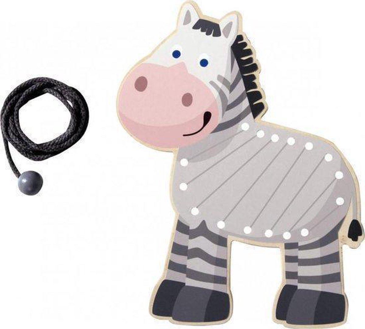 De zebra wacht op zijn strepen ..... Steken, rijgen en spelen: dit rijgdier biedt de kleintjes talloze mogelijkheden en oefent de fijne motoriek. *Leuk bezig zijn, ook voor onderweg Materiaal: multiplex, polyester Afmetingen: 18 x 16,5 cm