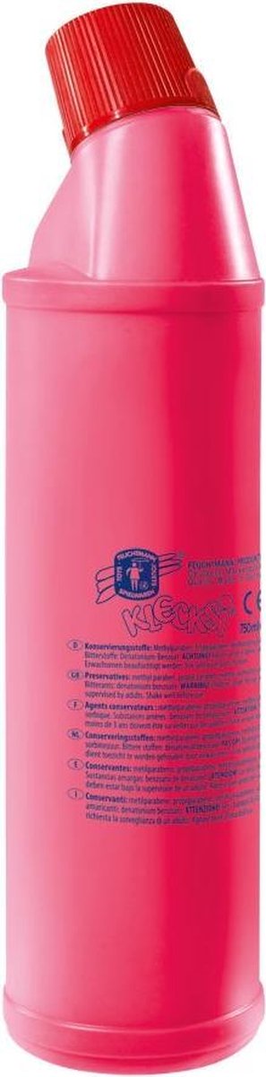 Klecksi Vingerverf. Klecksi betekent kleur! Door de speciale structuur hecht deze verf aan bijna alle oppervlakten, zonder uit te lopen. Deze flacons vingerverf zijn ideaal voor grote groepen, zoals scholen, kinderfeestjes, clubs en kinderdagverblijven. De wateroplosbare vingerverf was je gemakkelijk met water en zeep van jouw handen. De verf is volkomen onschadelijk en daardoor zeer geschikt voor kinderen om mee te spelen. Specificaties: Droogt snel. Verf is in water oplosbaar. Geschikt voor gebruik op alle materialen. Ook te gebruiken op ramen en andere verticale oppervlakken. Gluten- (meel-), eiwit-, pinda- en lactosevrij. Leeftijd: 2+ Inhoud: 900 ml Kleur: Roze