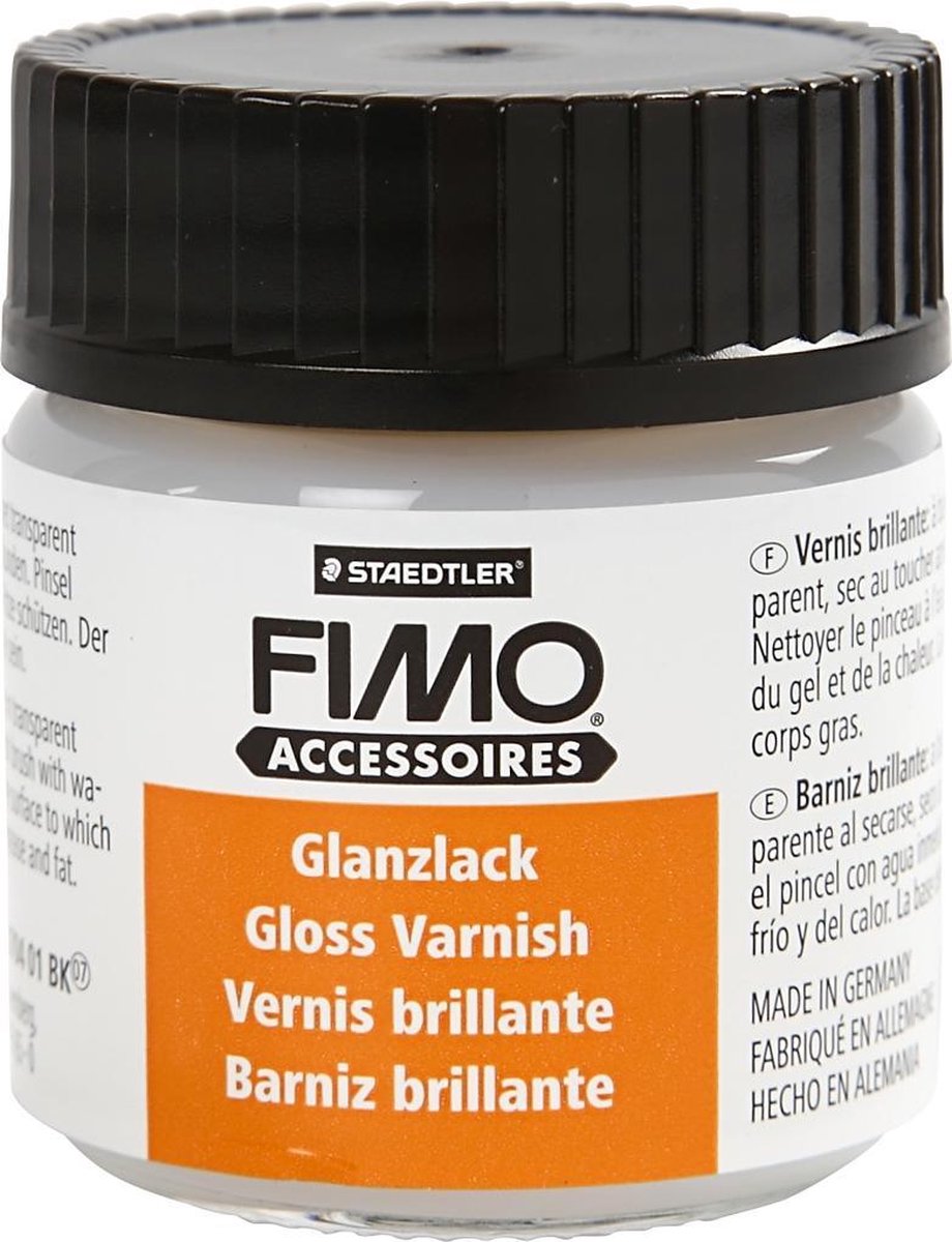 Fimo glanzend vernis Voor een glanzend effect Om het oppervlak te beschermen Doorschijnend na opdrogen Lichtbestendig Weersbestendig Op waterbasis Blisterkaart met potje glanslak van 35 ml