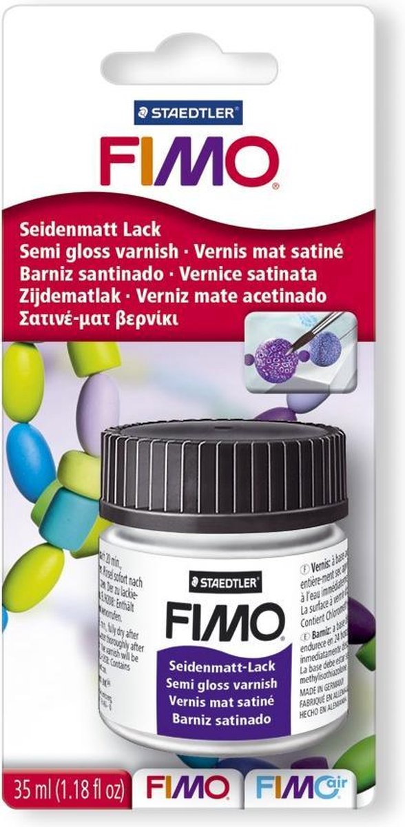 Fimo half-glanzend vernis Voor matte effecten Om het oppervlak te beschermen Doorschijnend na opdrogen Lichtbestendig Weersbestendig Op waterbasis Blisterkaart met 1 potje van 35 ml