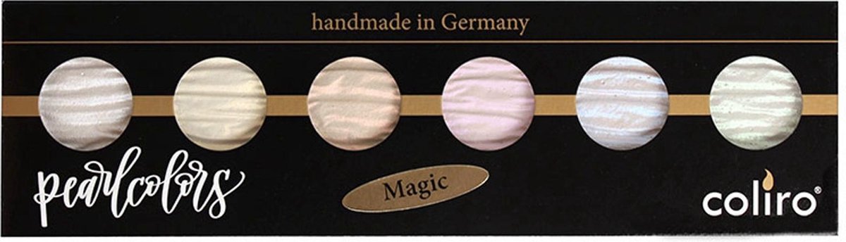Plastic box met 6 Shimmer-Pearlcolors in de kleuren: Silver Pearl (Shimmer), Fine Gold (Shimmer), Copper Pearl (Shimmer), Fine Lilac (Shimmer), Blue Pearl (Shimmer), Green Pearl (Shimmer) Coliro Pearlcolors sinds 2005 Handgemaakt door Finetec Coliro Pearl Color Set is een kunstenaarsverf van uitmuntende kwaliteit. het wordt handgemaakt van mica, een natuurlijk mineraal dat een breed scala aan metallic kleuren biedt en arabische gom van goud en zilver tot glanzende parel kleuren. Voor kalligraferen mengt u de verf met water (tot inkt dikte) en brengt u de verf met een penseel op de pen nib aan. Een waterbrush is ook zeer geschikt om te kalligraferen Deze waterverf is ideaal voor kalligrafie en handletteren . Voor het beste resultaat druppelt u een paar druppels water op iedere kleur en wacht minimaal een minuutje voor u begint. + 1 Aquarelblok A5 / 15V / 300gr Zwart Papier + 1 Waterbrush Het populaire ETIVAL aquarelpapier van Clairefontaine is nu ook leverbaar in een zwarte