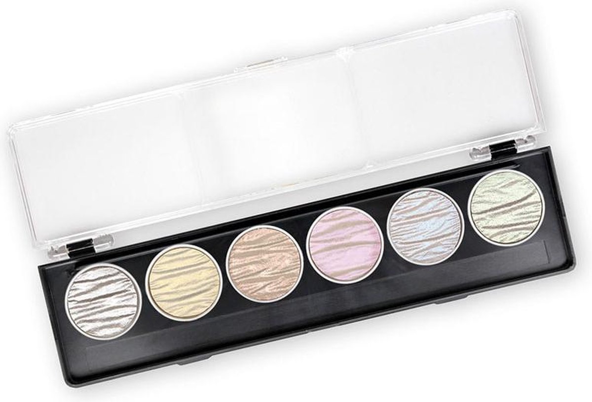 Plastic box met 6 Shimmer-Pearlcolors in de kleuren: Silver Pearl (Shimmer), Fine Gold (Shimmer), Copper Pearl (Shimmer), Fine Lilac (Shimmer), Blue Pearl (Shimmer), Green Pearl (Shimmer) De set met 6 Pearlcolors is verpakt in een handige A5 Zipperbag, de bag is waterafstotend en is gemaakt van flexibel, duurzaam, hoog kwalitatief en extra versterkt PVC materiaal. Napjes (Ø 30mm) zijn uitwisselbaar. Coliro Pearlcolors sinds 2005 Handgemaakt door Finetec Productbeschrijving Coliro Pearl Color Set is een kunstenaarsverf van uitmuntende kwaliteit. het wordt handgemaakt van mica, een natuurlijk mineraal dat een breed scala aan metallic kleuren biedt en arabische gom van goud en zilver tot glanzende parel kleuren. Voor kalligraferen mengt u de verf met water (tot inkt dikte) en brengt u de verf met een penseel op de pen nib aan. Een waterbrush is ook zeer geschikt om te kalligraferen Deze waterverf napjes zijn ideaal voor kalligrafie en handletteren . Voor het beste resultaat druppelt u