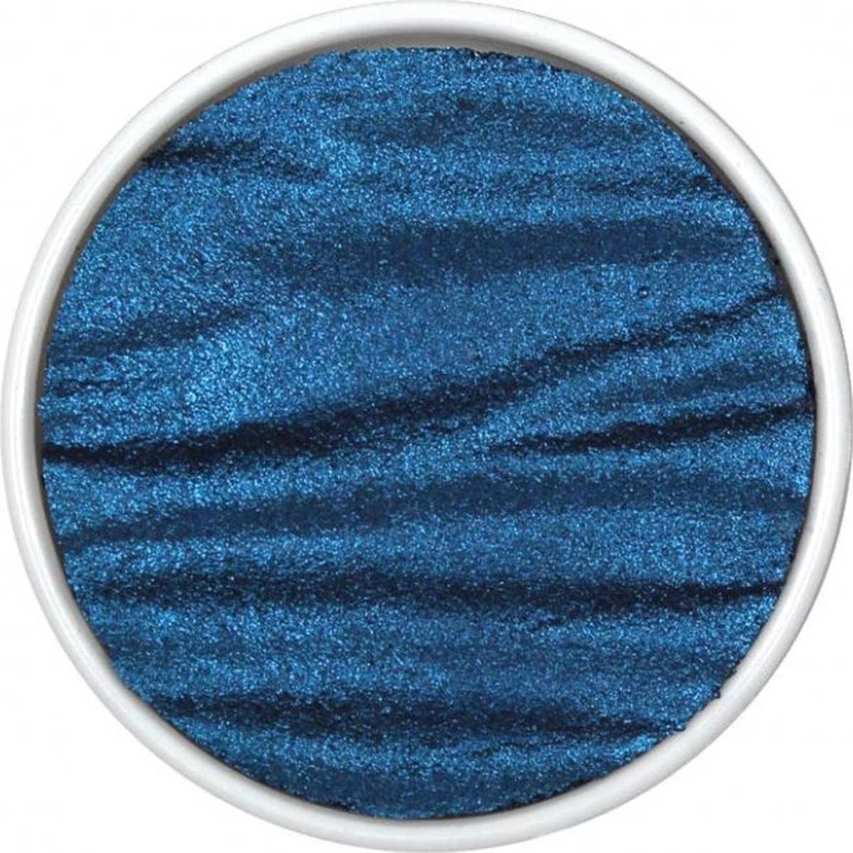 Finetec / Coliro Pearlcolor Waterverf Napje Ø 30mm. M008 “Midnight Blue ” Coliro Pearlcolor Waterverf Napjes sinds 2005 Handmade in Europa by Finetec Pearlcolor Napjes, kunstenaars Aquarelverf van uitmuntende kwaliteit het wordt handgemaakt van *Mica, een natuurlijk mineraal dat een breed scala aan metallic kleuren biedt, gecombineerd met Arabische gom van goud en zilver is het resultaat een prachtige glanzende verf met parelachtige kleuren. Voor kalligraferen mengt u de verf met water (tot inkt dikte) en brengt u de verf met een penseel op de Pen Nib aan. Een waterbrush is ook zeer geschikt om te kalligraferen. Deze waterverf is ideaal voor kalligrafie en handletteren . Voor het beste resultaat druppelt u een paar druppels water op iedere kleur en wacht u minimaal twee minuten voor u begint. De verfnapjes zijn perfect voor het creëren van speciale effecten en om te accentueren, de mapjes zijn onderling te mengen. * Mica glasachtig mineraal met metaalachtige glans