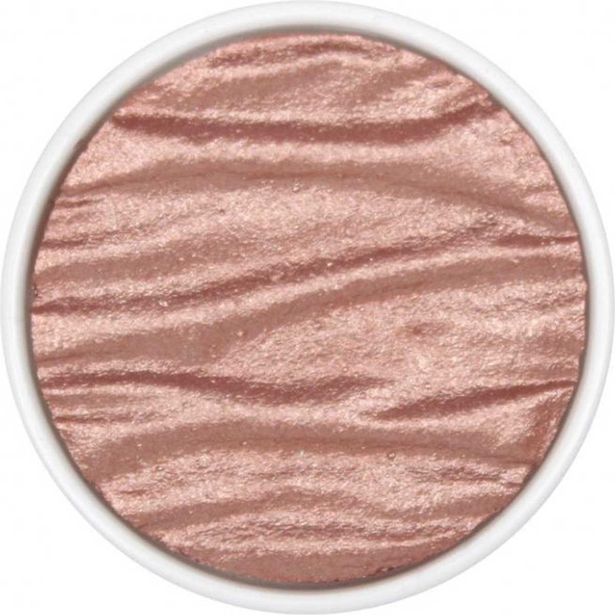 Finetec / Coliro Pearlcolor Waterverf Napje Ø 30mm. M012 “Rose Gold” Coliro Pearlcolor Waterverf Napjes sinds 2005 Handmade in Europa by Finetec Pearlcolor Napjes, kunstenaars Aquarelverf van uitmuntende kwaliteit het wordt handgemaakt van *Mica, een natuurlijk mineraal dat een breed scala aan metallic kleuren biedt, gecombineerd met Arabische gom van goud en zilver is het resultaat een prachtige glanzende verf met parelachtige kleuren. Voor kalligraferen mengt u de verf met water (tot inkt dikte) en brengt u de verf met een penseel op de Pen Nib aan. Een waterbrush is ook zeer geschikt om te kalligraferen. Deze waterverf is ideaal voor kalligrafie en handletteren . Voor het beste resultaat druppelt u een paar druppels water op iedere kleur en wacht u minimaal twee minuten voor u begint. De verfnapjes zijn perfect voor het creëren van speciale effecten en om te accentueren, de mapjes zijn onderling te mengen. * Mica glasachtig mineraal met metaalachtige glans