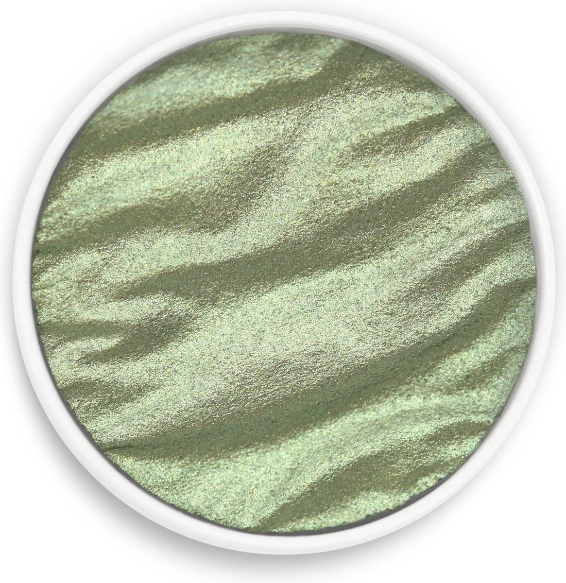 Finetec / Coliro Pearlcolor Waterverf Napje Ø 30mm. M042 "Pistachio" - Glanzend Lichtgroen. Coliro sinds 2005 Handmade in Europa by Finetec Pearlcolor Napjes, kunstenaars Aquarelverf van uitmuntende kwaliteit het wordt handgemaakt van *Mica, een natuurlijk mineraal dat een breed scala aan metallic kleuren biedt, gecombineerd met Arabische gom van goud en zilver is het resultaat een prachtige glanzende verf met parelachtige kleuren. Voor kalligraferen mengt u de verf met water (tot inkt dikte) en brengt u de verf met een penseel op de Pen Nib aan. Een waterbrush is ook zeer geschikt om te kalligraferen. Deze waterverf is ideaal voor kalligrafie en handletteren . Voor het beste resultaat druppelt u een paar druppels water op iedere kleur en wacht u minimaal twee minuten voor u begint. De verfnapjes zijn perfect voor het creëren van speciale effecten en om te accentueren, de mapjes zijn onderling te mengen. * Mica glasachtig mineraal met metaalachtige glans