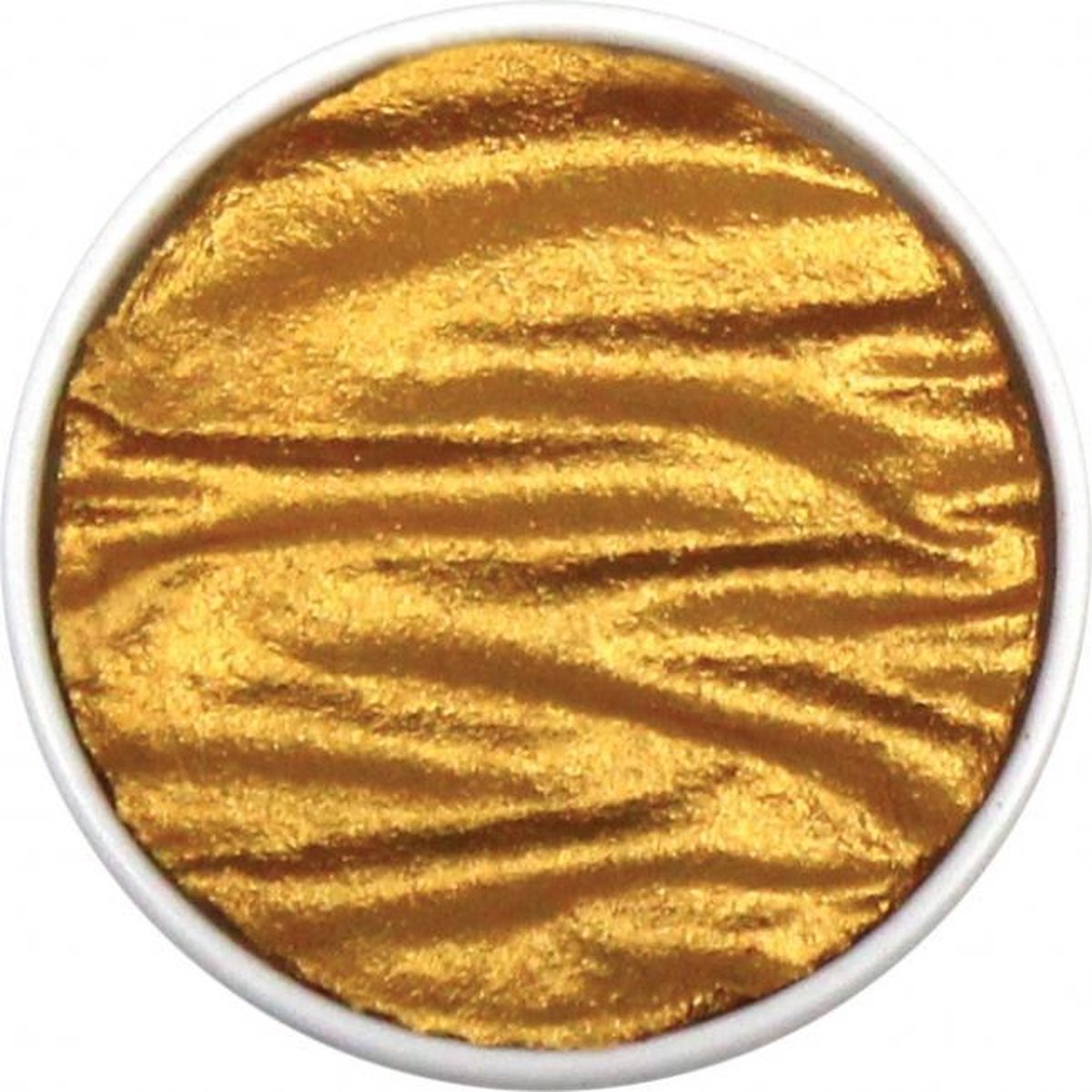 Finetec /Coliro Pearlcolor Waterverf Napje "Tibet Gold " Ø 30mm. Coliro Pearlcolor Waterverf Napjes sinds 2005 Handmade in Europa by Finetec Pearlcolor Napjes, kunstenaars Aquarelverf van uitmuntende kwaliteit het wordt handgemaakt van *Mica, een natuurlijk mineraal dat een breed scala aan metallic kleuren biedt, gecombineerd met Arabische gom van goud en zilver is het resultaat een prachtige glanzende verf met parelachtige kleuren. Voor kalligraferen mengt u de verf met water (tot inkt dikte) en brengt u de verf met een penseel op de Pen Nib aan. Een waterbrush is ook zeer geschikt om te kalligraferen. Deze waterverf is ideaal voor kalligrafie en handletteren . Voor het beste resultaat druppelt u een paar druppels water op iedere kleur en wacht u minimaal twee minuten voor u begint. De verfnapjes zijn perfect voor het creëren van speciale effecten en om te accentueren, de mapjes zijn onderling te mengen. * Mica glasachtig mineraal met metaalachtige glans Sinds 2005 Handmade in