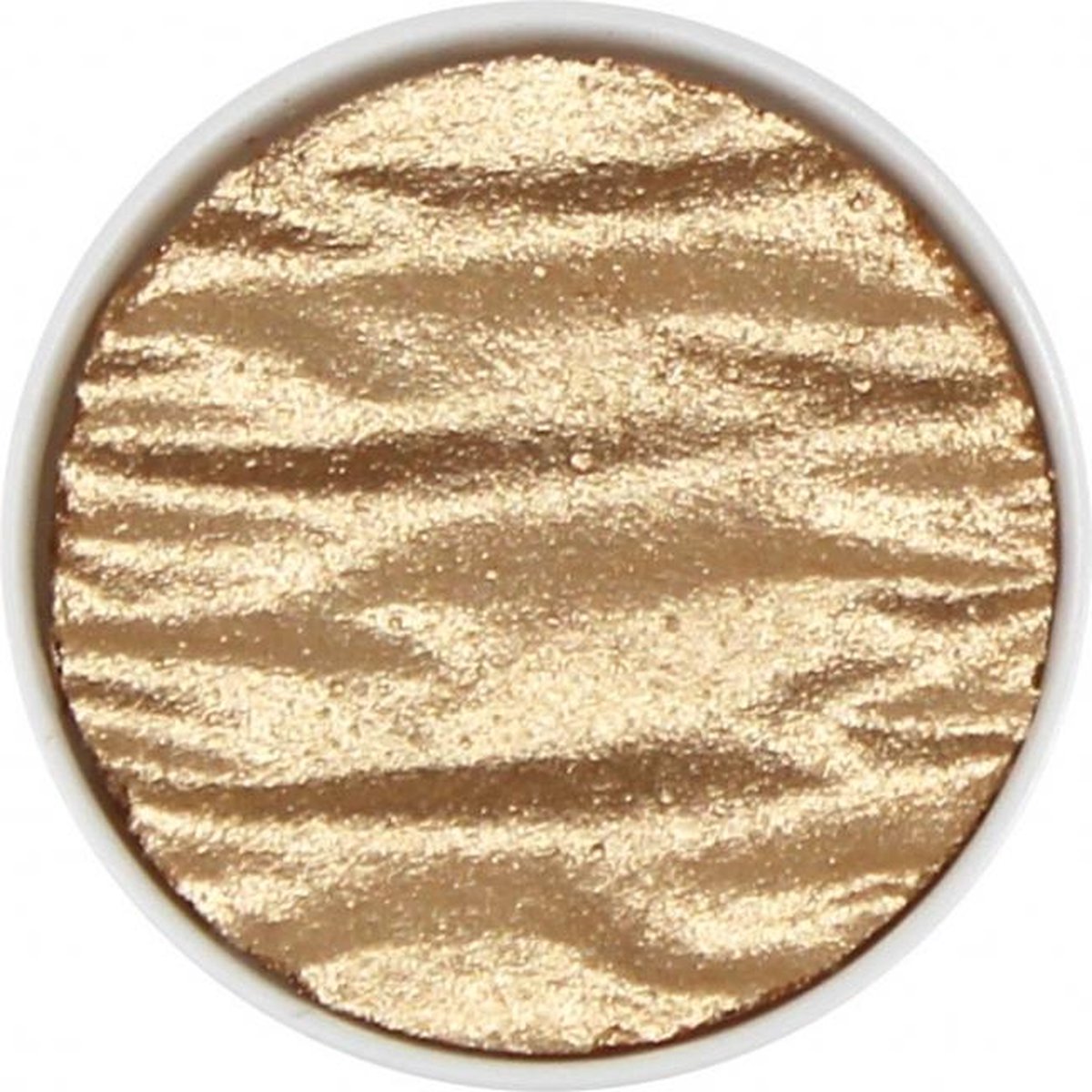 Finetec / Coliro Pearlcolor Waterverf Napje M650 "Moon Gold" Ø 30mm. Coliro Pearlcolor Waterverf Napjes sinds 2005 Handmade in Europa by Finetec Pearlcolor Napjes, kunstenaars Aquarelverf van uitmuntende kwaliteit het wordt handgemaakt van *Mica, een natuurlijk mineraal dat een breed scala aan metallic kleuren biedt, gecombineerd met Arabische gom van goud en zilver is het resultaat een prachtige glanzende verf met parelachtige kleuren. Voor kalligraferen mengt u de verf met water (tot inkt dikte) en brengt u de verf met een penseel op de Pen Nib aan. Een waterbrush is ook zeer geschikt om te kalligraferen. Deze waterverf is ideaal voor kalligrafie en handletteren . Voor het beste resultaat druppelt u een paar druppels water op iedere kleur en wacht u minimaal twee minuten voor u begint. De verfnapjes zijn perfect voor het creëren van speciale effecten en om te accentueren, de mapjes zijn onderling te mengen. * Mica glasachtig mineraal met metaalachtige glans