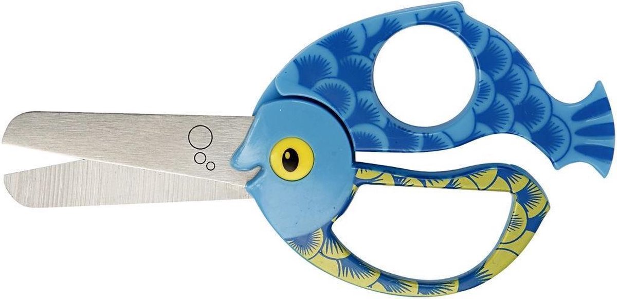 Fiskars kinderschaar Fiskars kinderschaar met ogen in de vorm van een vis. Deze schaar heeft ronde punten en dikkere schaarbladen voor de mooiste creaties. De bladlengte van deze schaar is 5 cm. Specificaties: Afmetingen: 13 cm Kleur: blauw/groen Geslacht: junior aantal: 1 stuk Materiaal: kunststof Leeftijd: vanaf 4 jaar