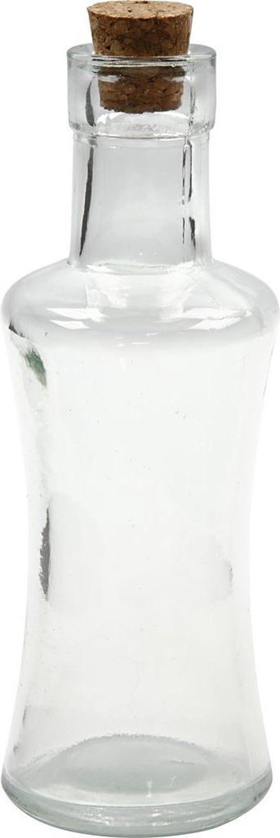 Fles. H: 16 cm. d: 6 cm. gatgrootte 1.5 cm. 175 ml. 12 stuk/ 1 karton