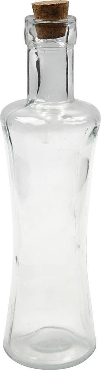 Fles. H: 21 cm. gatgrootte 1.5 cm. 250 ml. 12 stuk/ 1 karton