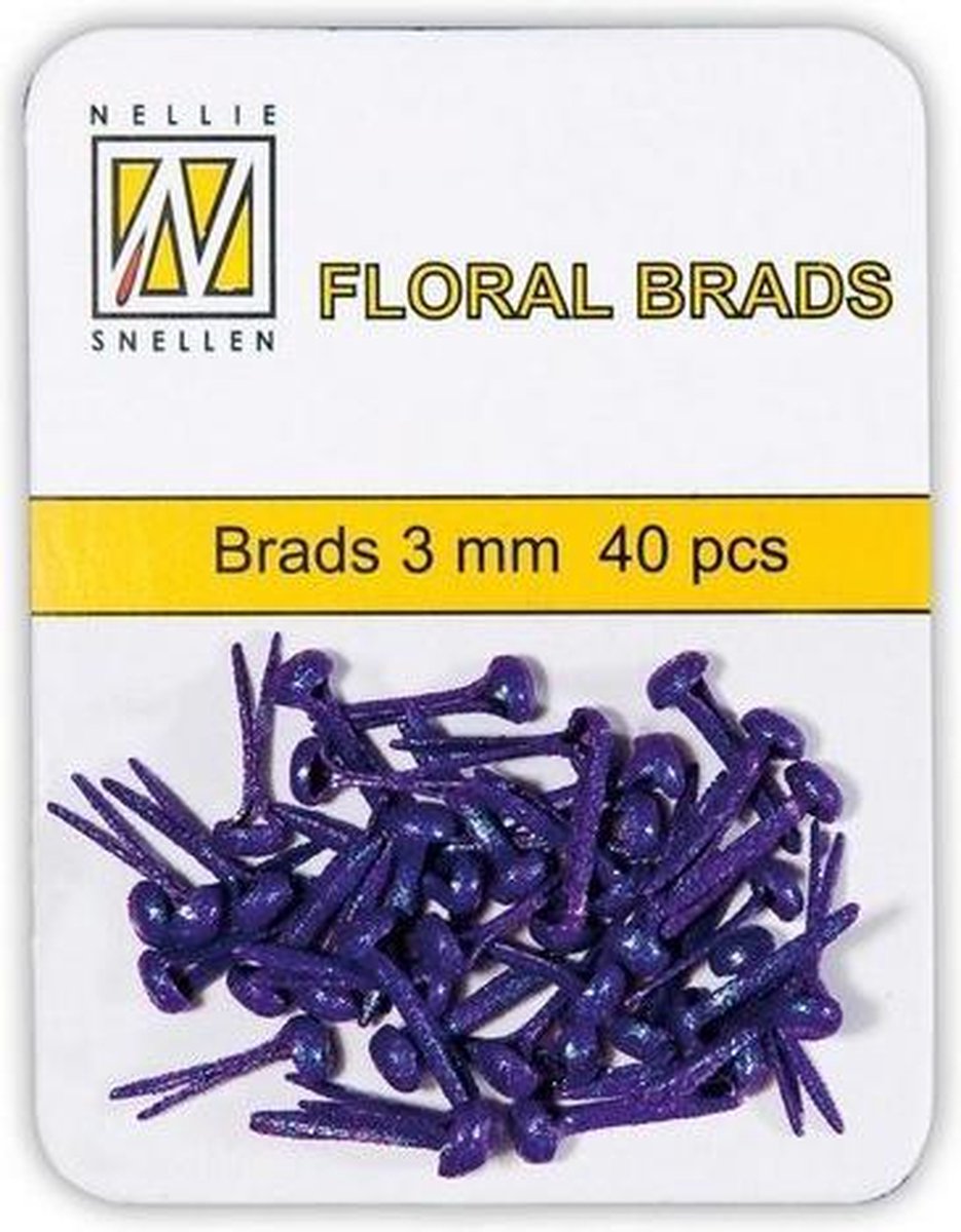 FLP-GB 008 - Nellie Snellen Glitter brads - Paars 40 Stuks - 3 mm - splitpennetjes mini lila met shimmer
