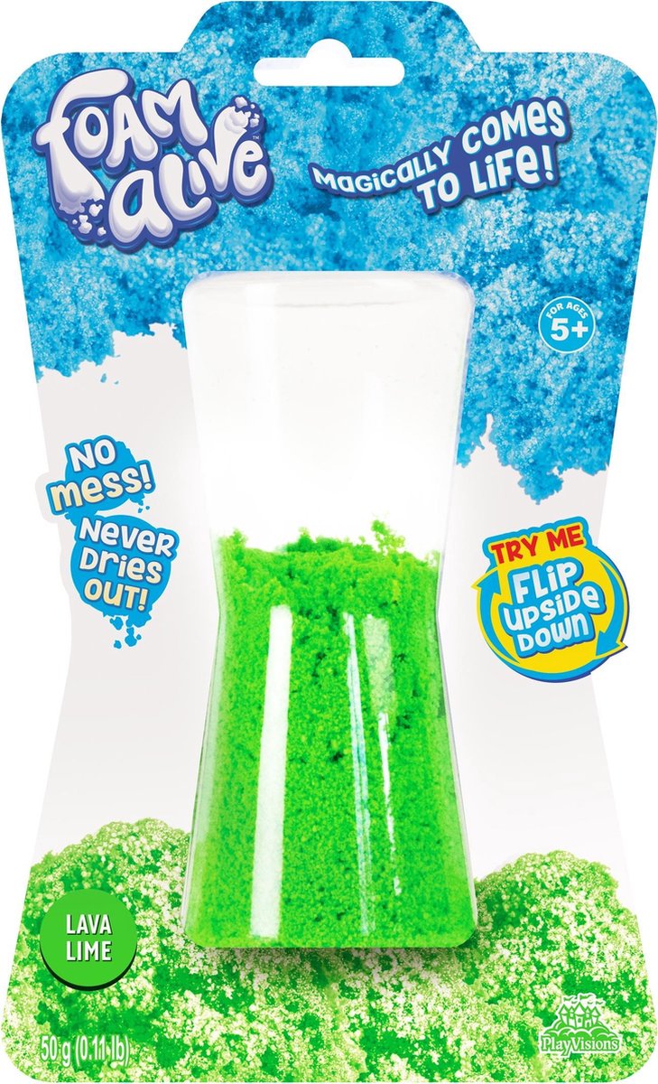 Deze blister bevat 50 gram magische Foam Alive! Draai de verpakking om en zie het materiaal magisch tot leven komen! Foam Alive zorgt niet voor rommel en droogt nooit uit.Houd uit de buurt van ogen. Als materiaal in het oog is gekomen, spoel deze met schoon water. Foam Alive beweegt in flow-motion! Foam Alive komt op magische wijze tot leven! Het is squishy,fluffy schuim dat op een mysterieuze manier in 'flow-motion' beweegt. Houd het in je handen en zie hoe het langzaam tussen je vingers door flowt. Het lijkt bijna alsof het smelt!