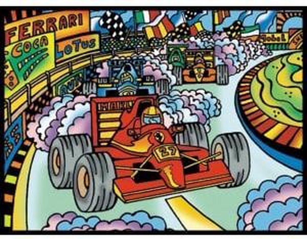 Formule racen Colorvelvet kleurpakket inclusief 12 stiften. Wat is Colorvelvet? Met Colorvelvet maak je de mooiste kunstwerken maar niet zoals de standaard kleurplaten. De tekeningen zijn gemaakt van een speciaal absorberend karton, gedeeltelijk bedekt met een 1mm dikke zwarte laag fluweel waardoor je een duidelijke scheiding krijgt met hetgeen wat je moet inkleuren. Behalve dat dit stuk fluweel ervoor zorgt dat je de witte vlakken makkelijk kunt inkleuren komt het zwarte fluweel naar voren wat een heel chique geheel geeft op je Colorvelvet kleurplaat. Deze tekeningen zijn eenvoudig, dit maakt Colorvelvet leuk en leerzaam waardoor dit ideaal is voor alle leeftijden vanaf 3 jaar en ouder. Met colorvelvet hebben kinderen plezier en leren ze tegelijkertijd, waardoor ze kleurrijke tekeningen maken waarmee ze ook hun slaapkamer kunnen versieren. Maar ook voor volwassenen is Colorvelvet zeer geschikt om lekker creatief bezig te zijn. De tekeningen kan je op allerlei verschillende manieren