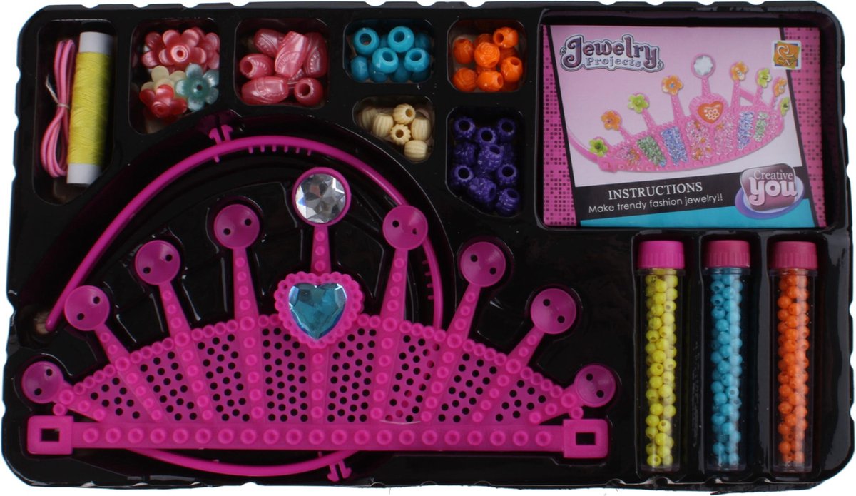 Free and Easy juwelenset Verras jezelf of jouw beste vriendin met dit zelfgemaakte kroontje. Deze set bevat alles wat je nodig hebt om een prachtige kroontje te maken. Superleuk om zelf aan te doen of om cadeau te geven. Specificaties: Kleur kroontje: roze Kleur: multicolor Geslacht: meisjes Materiaal: kunststof Geschikt voor kinderen vanaf 3 jaar Inhoud: 1 Kroontje 1 Diadeem 11 Verschillende kleuren kraaltjes