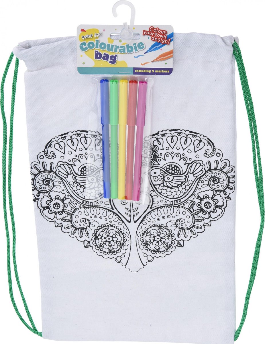 Free and Easy kleur je eigen tas Kleur jouw tas in met de mooiste kleurtjes en je hebt binnen een mum van tijd jouw eigen creatie. Specificaties: Kleur: multicolor Materiaal: textiel Geslacht: meisjes Afmetingen: 29 x 24 cm (L x B) Leeftijd: vanaf 3 jaar Inhoud: 1 Tas 5 Stiften