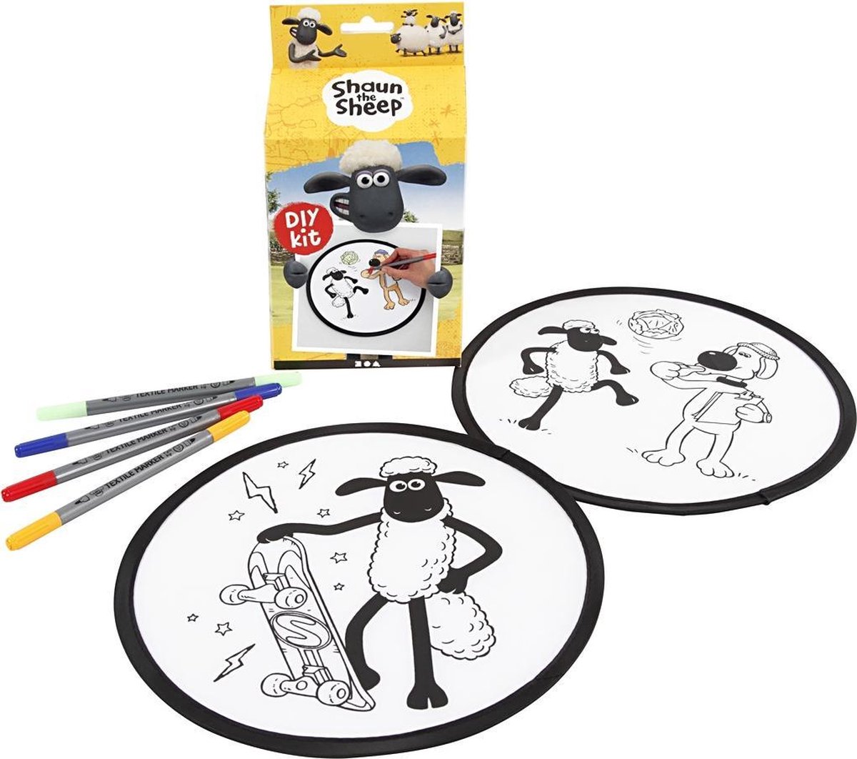 Materialenset met 2 opvouwbare frisbees van polyamide met zachte randen en voorgedrukt motief om te decoreren met textielstiften. Inclusief inspiratie Inhoud: 2 frisbees met 2 verschillende designs en 4 dubbelpuntige textielstiften.