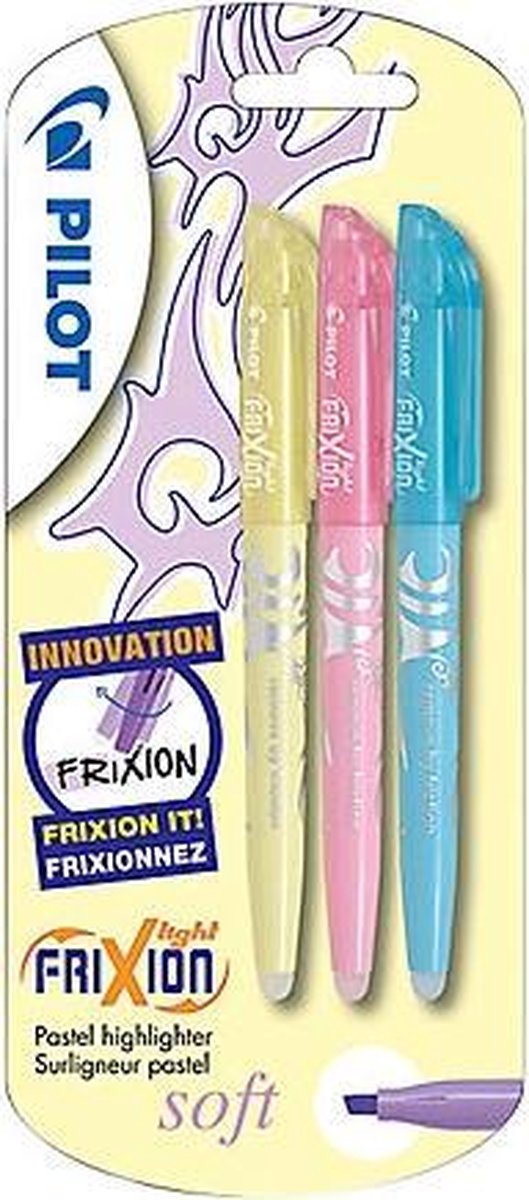 * Uitgumbare markeerstift * Duidelijk markeren en eenvoudig corrigeren * Zonder gum, zonder wisser, zonder papierbeschadigingen * De speciale inkt reageert op warmte, door wrijving. Set van 3 stiften