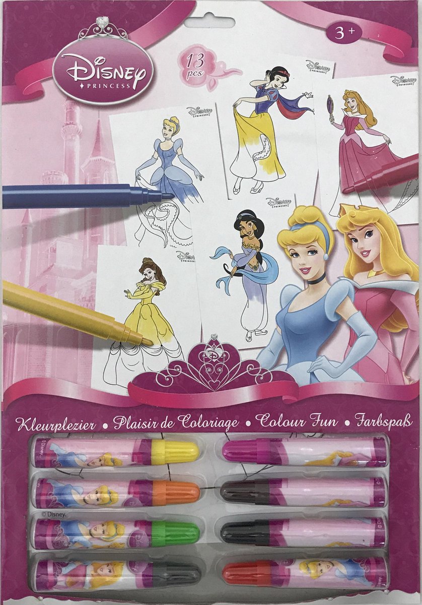 Disney Frozen kleurboek met stiften 5 kleurplaten van de prinsessen van Disney. De verpakking is bovendien voorzien van 8 dikke viltstiften. Laat je fantasie de vrije loop met dit kleur- en stickerboek van Frozen! Dit kleurboek bevat de mooiste tekeningen van je favoriete Frozen- karakters Elsa en Anna. Zie ook onze andere Disney kleurboeken of de combinatie van 3 stuks : EAN 8717703116922 - Disney Frozen kleurboek EAN 8945005907560 - Disney Winnie the Pooh kleurboek EAN 8945005907577 - Disney Cars kleurboek EAN 8945005907584 - Set van 3 Disney kleurboeken
