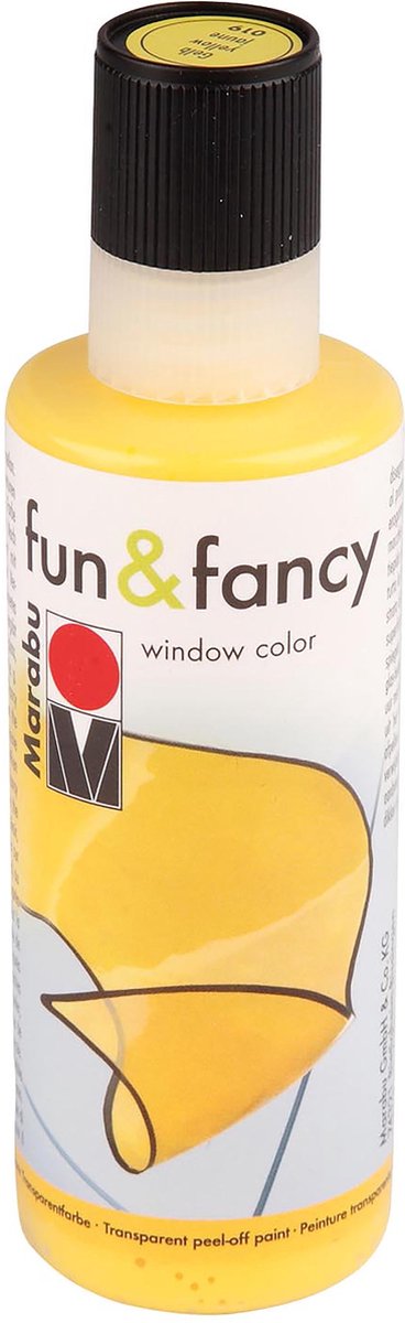 Sticker- en glasverf geel op waterbasis - in handige plastic flesje met punt.