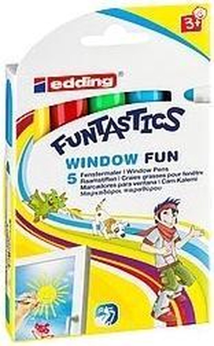 Een stralende zon of juist wat sneeuwvlokken op een winters raam teken, of een draak vuur laten spuwen op een van de hoeken van je raam? Allemaal in een handomdraai gedaan met de bijzonder opake en heldere edding 16 FUNTASTICS Window Fun die komt in briljante kleuren voor glas, ramen en spiegels. En als je het motief wilt veranderen, kun je het met een beetje water gemakkelijk van elk glad oppervlak vegen. De pasta op waterbasis zit in een stabiele barrel, zodat breuk wordt voorkomen. Alle kleuren kunnen op 60°C uit de meeste textielsoorten worden gewassen, als er al eens gemorst mocht worden. Natuurlijk voldoet de FUNTASTIC Window Fun raamstift aan de CE-markering voor kindvriendelijk speelgoed. Raamstift voor kinderen voor dekkend en opvallend tekenen op glas, ramen, spiegels en donkere papieren oppervlakken De pastapunt heeft een schrijfdikte van 2-6 mm De inkt op waterbasis kan met water van bijna alle oppervlakken worden geveegd zonder resten achter te laten en kan ook op 60