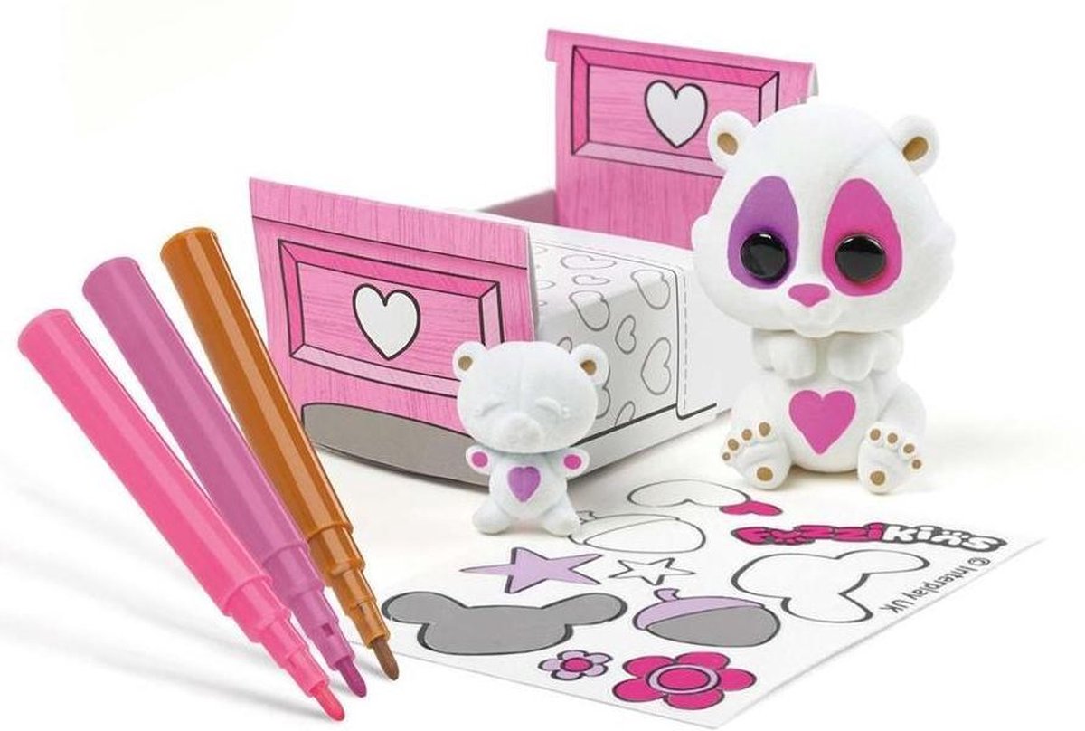FuzziKins Fuzzi Babies hamster set Kleur, verwijder en kleur opnieuw! Kleur jou hamster, beertje en bedje met de 3 stiften.