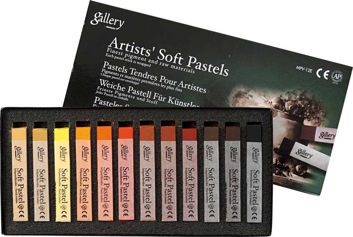 Gallery Soft Pastel Set (12 stuks) Premium studiokwaliteit zachte pastels met zeer hoge pigmentconcentratie - ideaal voor kunstenaars en studio's. Verpakt in box.