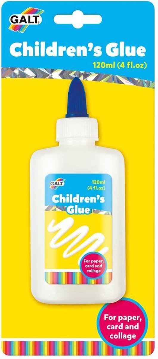 Galt kinderlijm Deze kinderlijm is ideaal om papier en karton vast te lijmen. Te gebruiken tijdens verschillende knutselactiviteiten. Specificaties: Kleur: wit Geslacht: junior Materiaal: kunststof Lengte flacon: 13,5 cm Inhoud: 120 ml Leeftijd: vanaf 3 jaar
