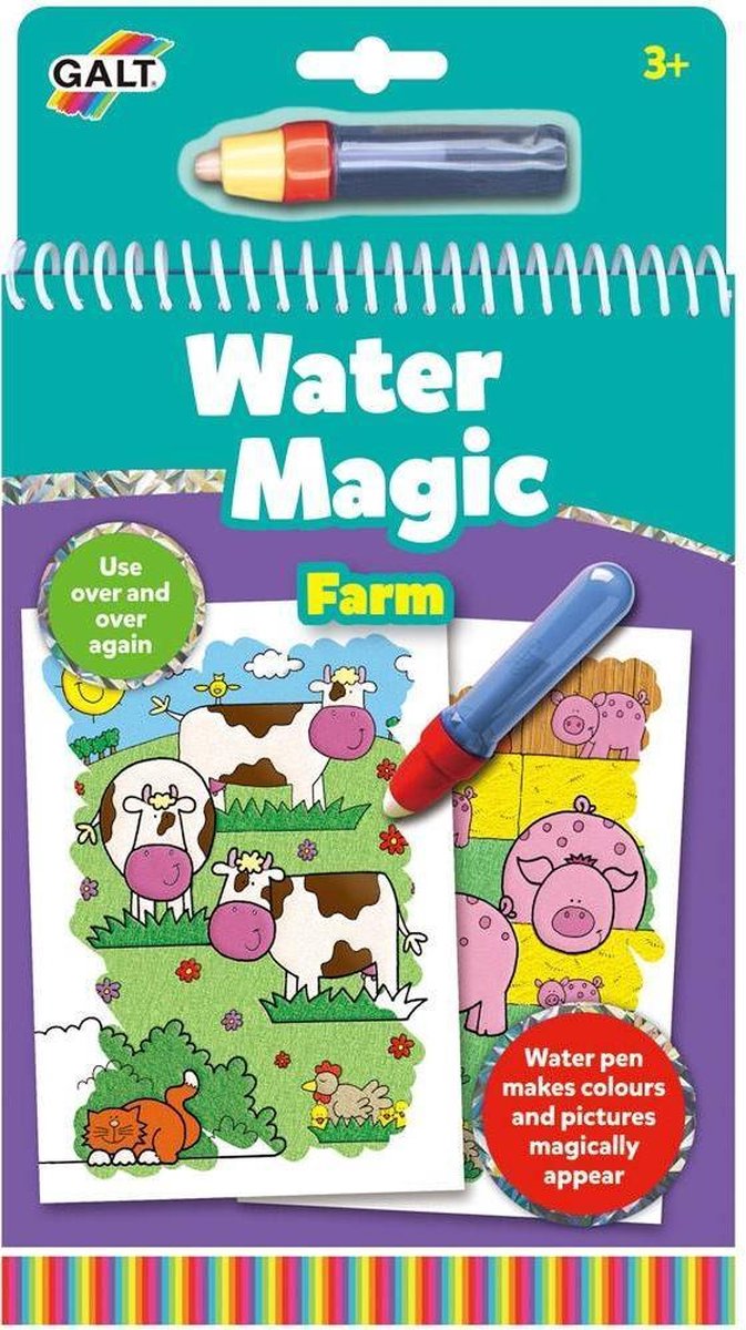 Galt waterkleurboek Wil jij weten welke kleuren er allemaal in de tekeningen verborgen zitten? Vul dan de pen met water en ga met je pen over de tekening! Er zal een gave en mooie tekening tevoorschijn komen. In totaal zitten er 6 verschillende tekeningen in. Wanneer het water opgedroogd is, zal de tekening ook weer verdwijnen dus je kan het hergebruiken! Het kleurboek is ideaal voor onderweg om de kinderen blijvend te amuseren! Specificaties: Kleur: multicolor Geslacht: junior Materiaal: kunststof Afmetingen: 26,5 x 14,6 x 2 cm (LxBxH) Leeftijd: vanaf 4 jaar Inhoud: 1 Waterkleurboek 1 Pen