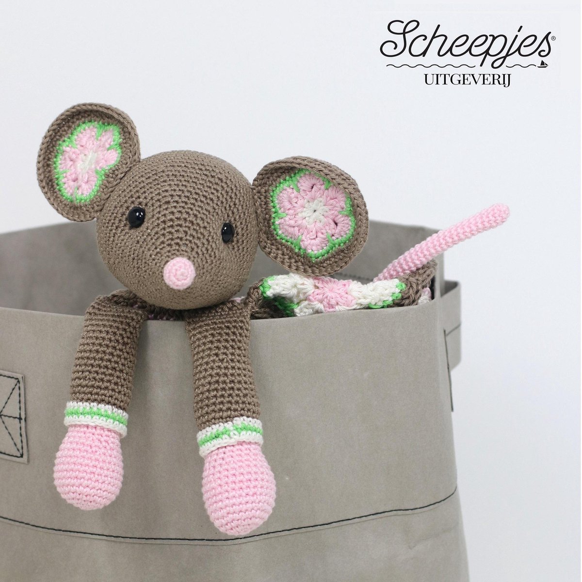 Pakketje met katoen garen en veiligheidsogen om het Knuffel-Muis uit het boek Knuffel-Dieren haken van Imke Crooijmans te maken. Let op: Dit is een pakket zonder patroon, vulling en haaknaald, deze dienen los gekocht te worden.