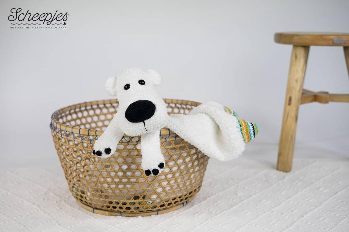 Isaac de Ijsbeer een een grote knuffelkont. Wil jij ook met hem knuffelen? Maak dan zelf deze leuke knuffeldeken zelf met dit garenpakket. In dit garenpakket zit: Benodigde garen Veiligheidsogen Stukje vilt LET OP: Je dient het patroon los te bestellen via woolytoons.com. Verder nodig: Vulling