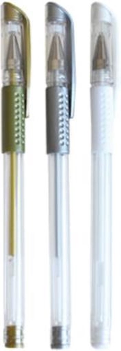 Gel pen 3 stuks 1 x goud 1x zilver 1 x wit