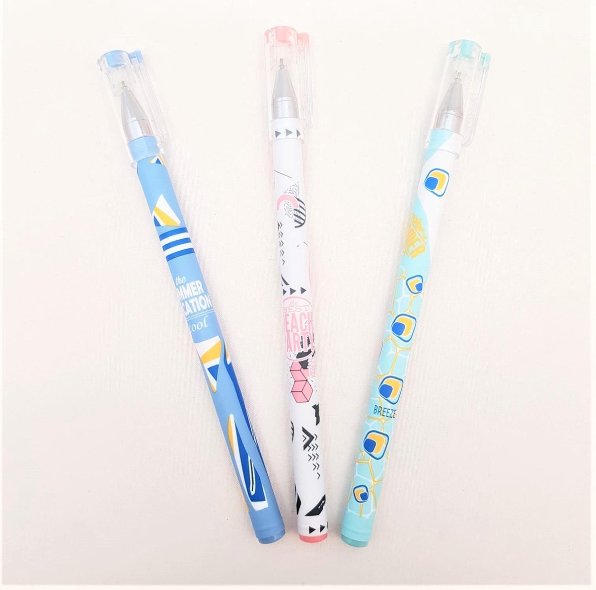 Gelpen met zomer motief met pen diameter van 0,35mm is leuk om mee te schrijven. verkrijbaar in 3 varianten.