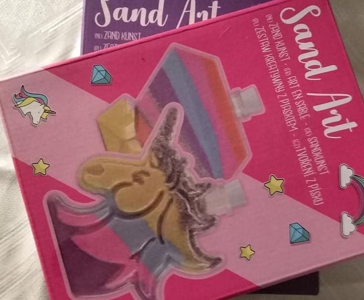 zandkunst pakketten/ 4 varianten/ per pakket 2 figuren/ 6 kleuren zand/ extra items/ vanaf 8 jaar met dit pakket ben je even bezig en kun je creatief aan de gang je kunt 8 zandfiguren maken/ met 6 kleuren