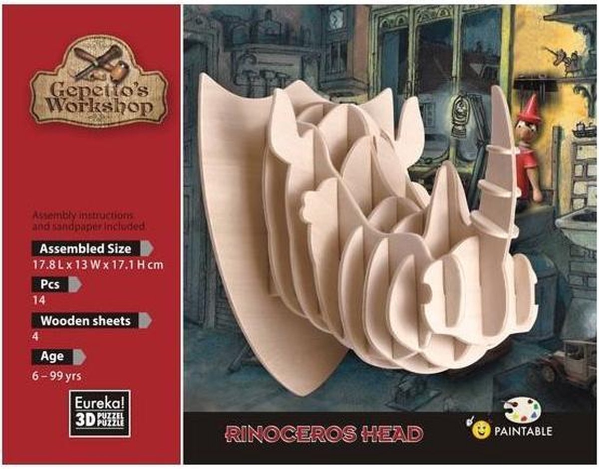 Gepetto's Workshop houten knutselspullen Rinoceros Head