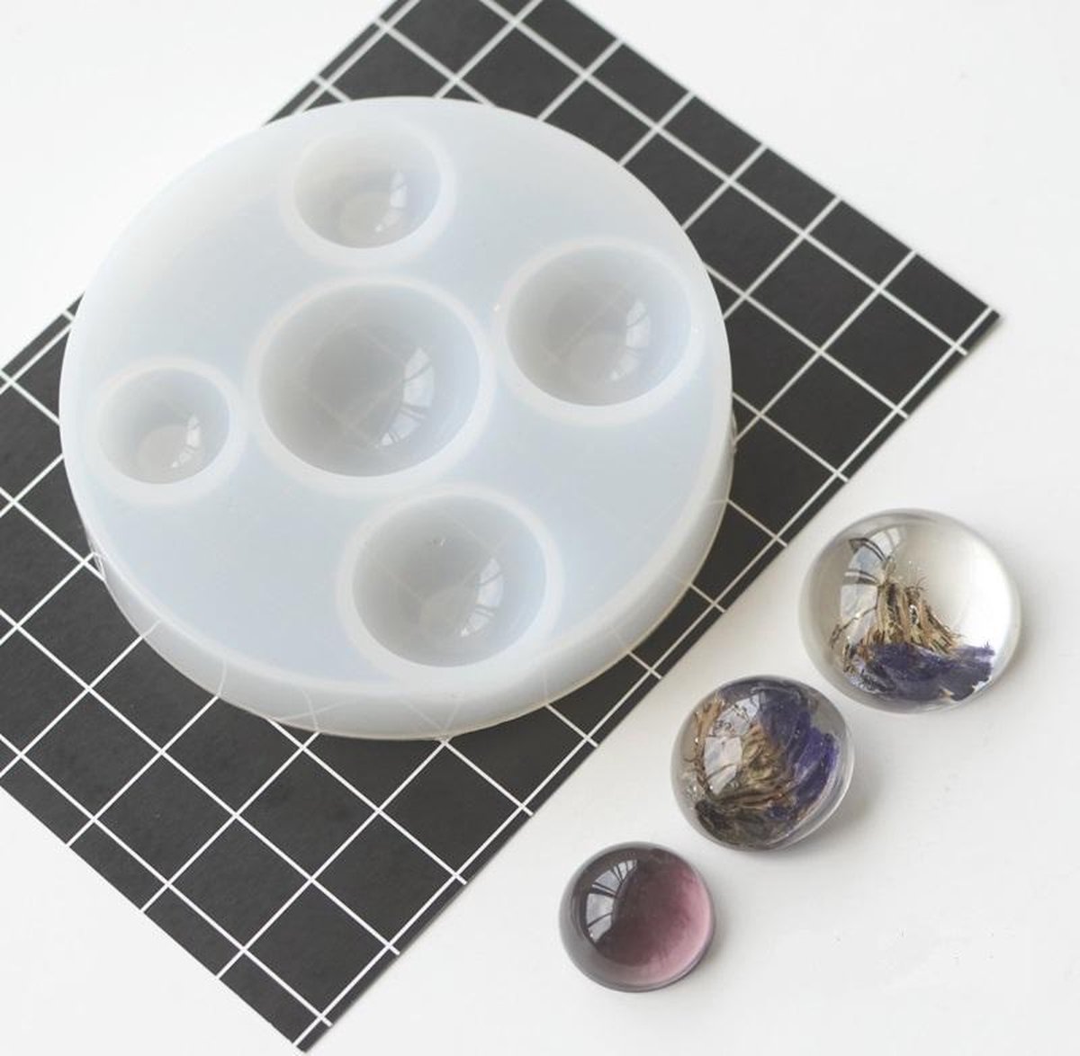 Halfbol vormige siliconen gietvorm gegoten in transparante siliconen die geschikt is voor UV-hars, epoxyhars en polymeerklei. Dit is een zachte en flexibele mal, gemakkelijk om je hars uit te drukken. Dit is een glanzende mal, dus u hoeft het uitgeharde stuk niet te glazuren.