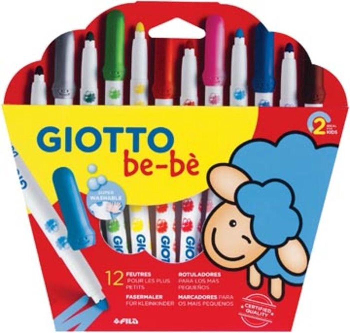 Super viltstift, ideaal voor kleine kinderen. Uitstekende, super afwasbare en uitwasbare kleuren (van handen en kleding). Dermatologisch getest. Ventieldop voorkomt verstikkingsgevaar, uiteinde met veiligheidssluiting. Stevige en geblokkeerde punt (diameter 5 mm). Geschikt voor kinderen vanaf 2 jaar. Geassorteerde kleuren.