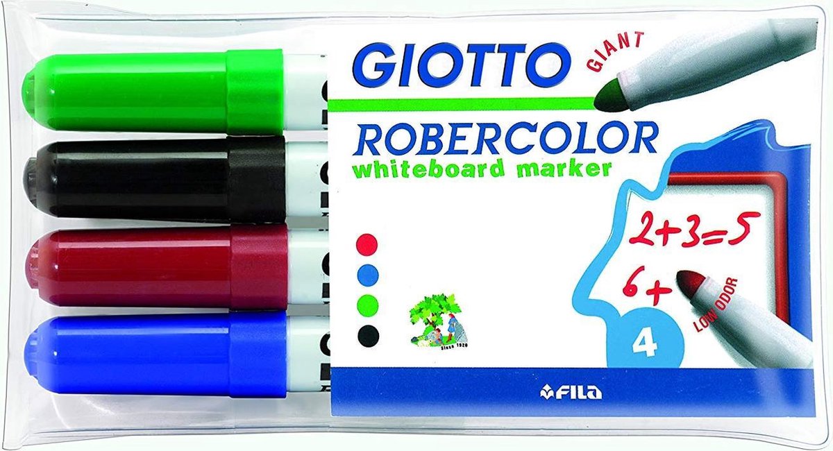 Giotto Box of 4 whiteboard markers Robercolor ROUND TIP, green, red, black, blue