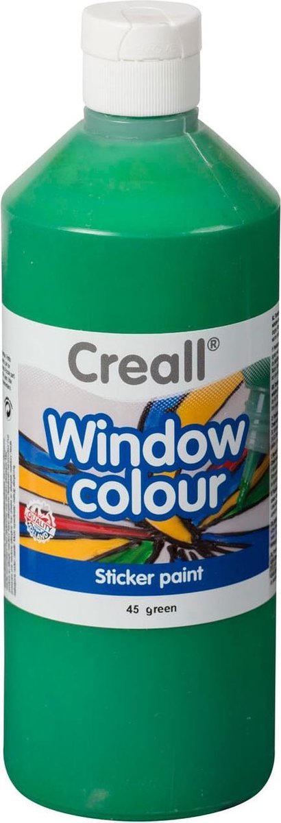 Unieke stickerverf in de kleur GROEN. Na droging vormt de verf een soort sticker. Sticker hecht goed op gladde oppervlakken: ramen, windlichten, vazen, jampotten of spiegels. Gebruiksklaar door handige tuitdop, geen kwasten nodig. Vloeit egaal uit, droogt transparant glanzend op. Lichtecht, kleuren vervagen niet in het zonlicht. Waarschuwing: kleine onderdelen; risico van inslikken.