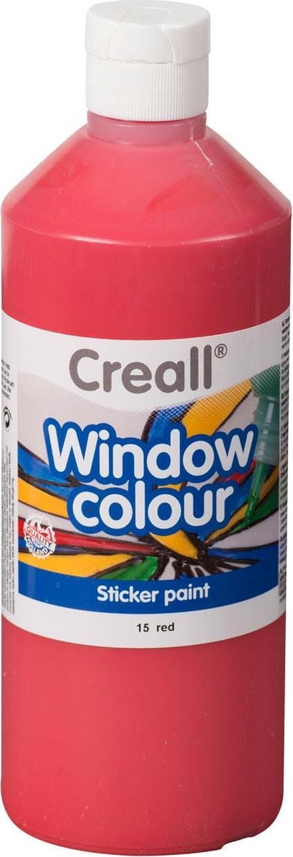 Unieke stickerverf in de kleur ROOD. Na droging vormt de verf een sticker. Sticker hecht goed op gladde oppervlakken: ramen, windlichten, vazen, jampotten of spiegels. Gebruiksklaar door handige tuitdop, geen kwasten nodig. Vloeit egaal uit, droogt transparant glanzend op. Lichtecht, kleuren vervagen niet in het zonlicht. Waarschuwing: kleine onderdelen; risico van inslikken.
