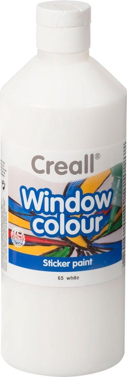 Unieke stickerverf in de kleur WIT. Na droging vormt de verf een soort sticker. Sticker hecht goed op gladden oppervlakken: ramen, windlichten, vazen, jampotten of spiegels. Gebruiksklaar door handige tuitdop, geen kwasten nodig. Vloeit egaal uit, droogt transparant glanzend op. Lichtecht, kleuren vervagen niet in het zonlicht. Waarschuwing: kleine onderdelen; risico van inslikken.