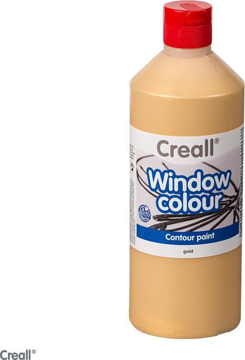 De verf vormt na droging een soort sticker. De sticker hecht goed op gladde oppervlakken zoals ramen, windlichten, vazen, jampotten of spiegels. Gebruiksklaar door handige tuitdop, geen kwasten nodig. Vloeit egaal uit, droogt tranparant glanzend op. Is lichtecht, de kleuren vervagen niet in het zonlicht. Glasverf - Contour - CREALL-GLASS Kleur: Goud Inhoud: 500ml