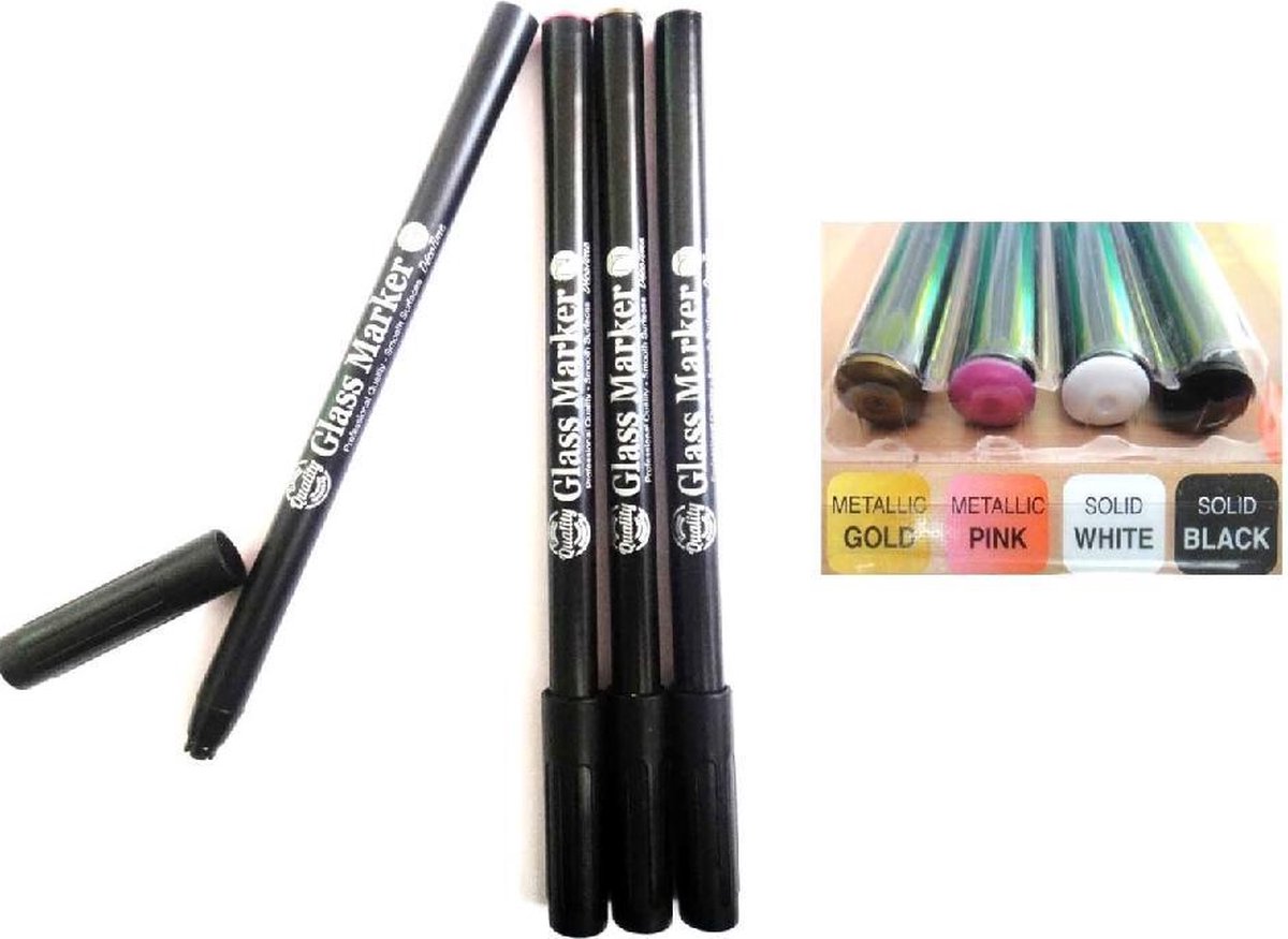 Glasstiften Porseleinstiften 4 kleuren Goud , Roze , Wit en Zwart