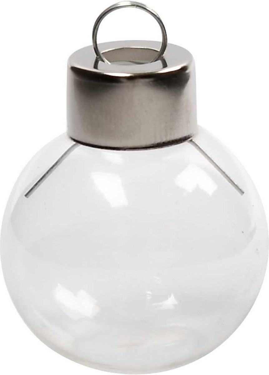 Fijne ballen van transparant glas met platte bodem met metalen hanger of klem voor bijvoorbeeld een naamkaart. Geleverd in cadeaudoos met doorzichtig deksel. Kan niet gefixeerd worden in de oven.Fijne ballen van transparant glas met platte bodem met metalen hanger of klem voor bijvoorbeeld een naamkaart.