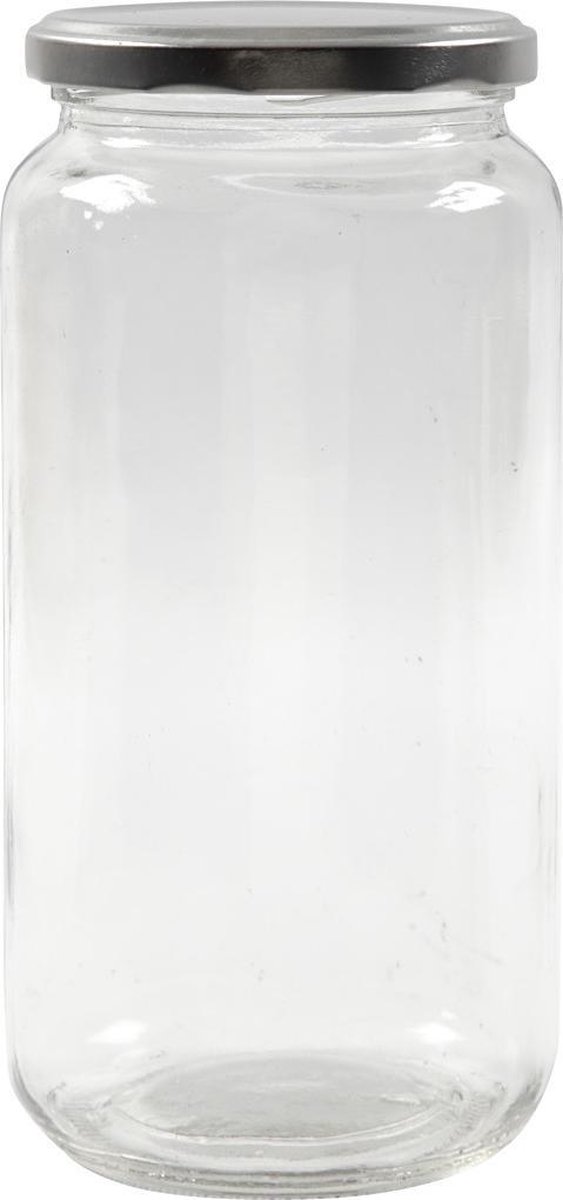 Pot van transparant glas met schroefdop gemaakt van zilverkleurig metaal.Pot van transparant glas met schroefdop gemaakt van zilverkleurig metaal.