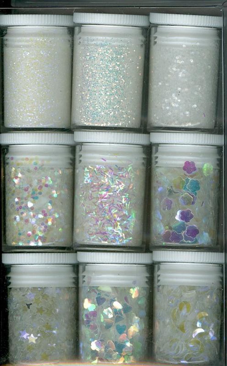 Glitter Assorti Set Kleur: Wit Assorti Inhoud: ca. 9x 4gram In Ophangblister Afwasbaar en niet giftig Ean-code: 8716659087751 Voeg wat glitter toe aan je kerst taferelen met dit reflecterende glitter. Leuk voor zelfgemaakte kaarten, afbeeldingen en versieringen. ( 12194-9401)